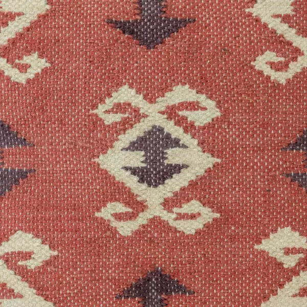 This charming square jute cushion showcases warm reds and neutral tones, beautifully handcrafted in India. Its durable fabric ensures the cushion is built to last, making it a lovely addition to any home decor.